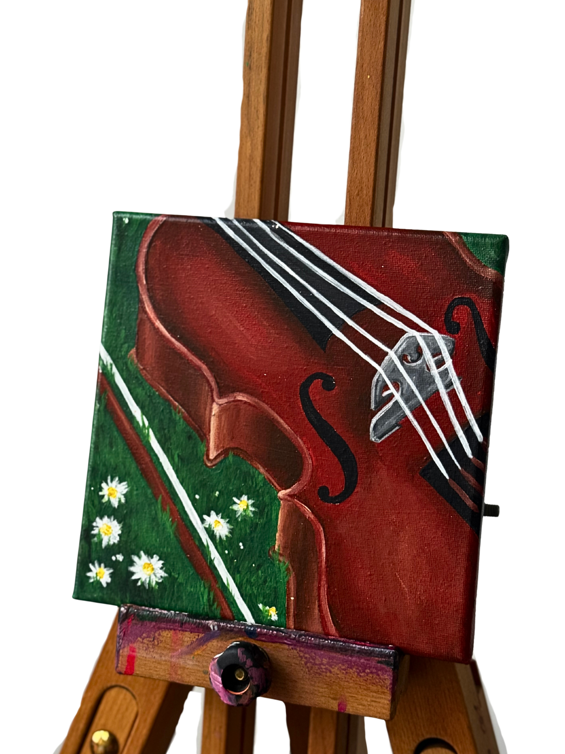Die Geige – ein Symbol der Kultur, der Freiheit und des Widerstands. Inmitten des Grases ruht sie, doch ihr Klang verstummt nie.