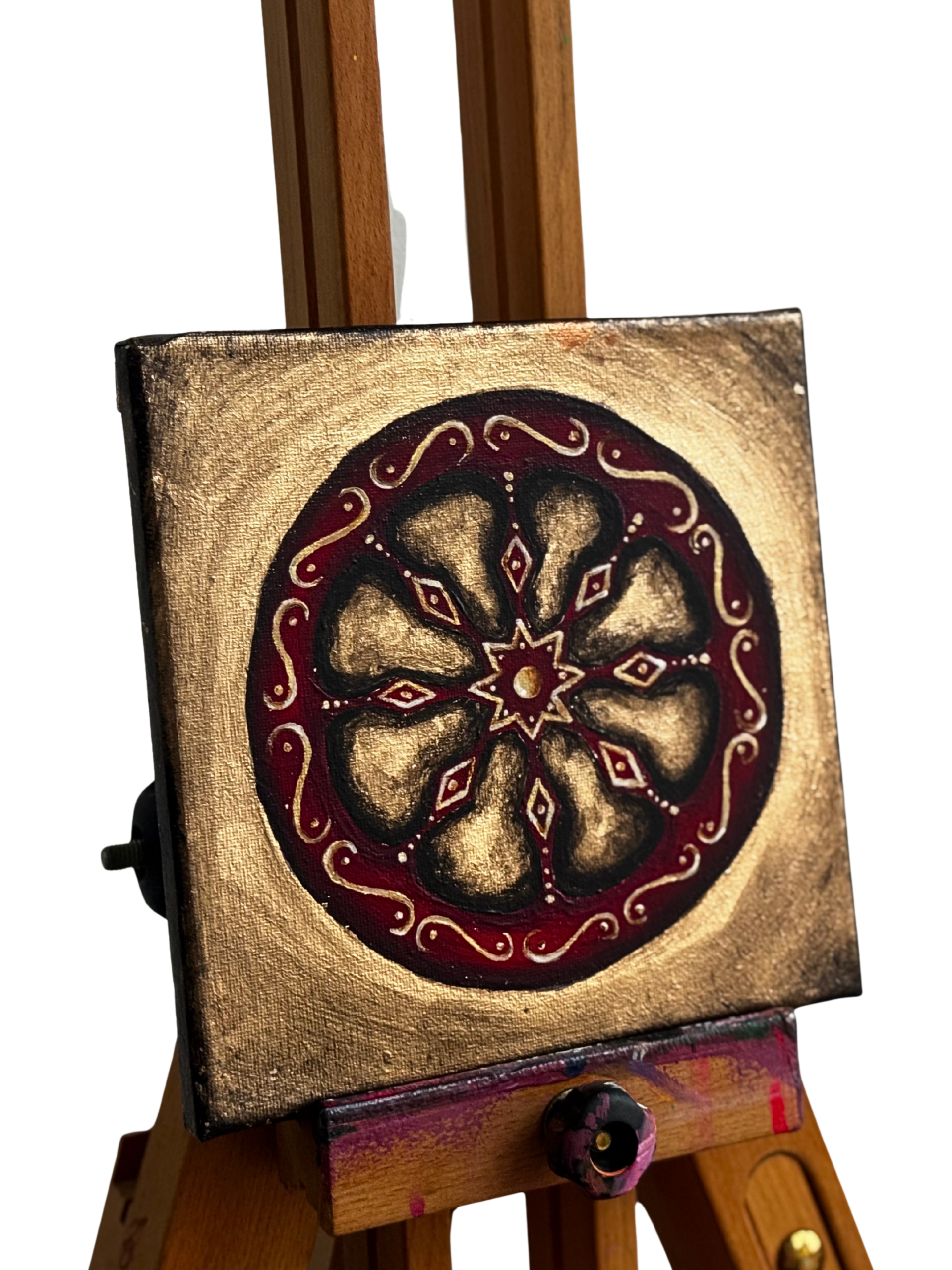 Alle Bilder haben die Maße 20x20cm und wurden mit Acryl und teils mit Blattgold auf Leinwand gearbeitet.